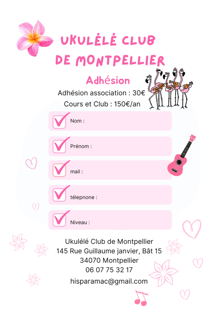 L'adhésion à l'association Hisparamac-Ukulélé Club de Montpellier (UCM'S) est de 30€ pour l'année et elle est non remboursable.